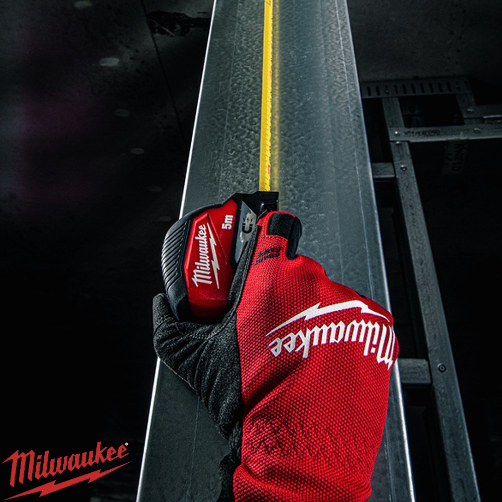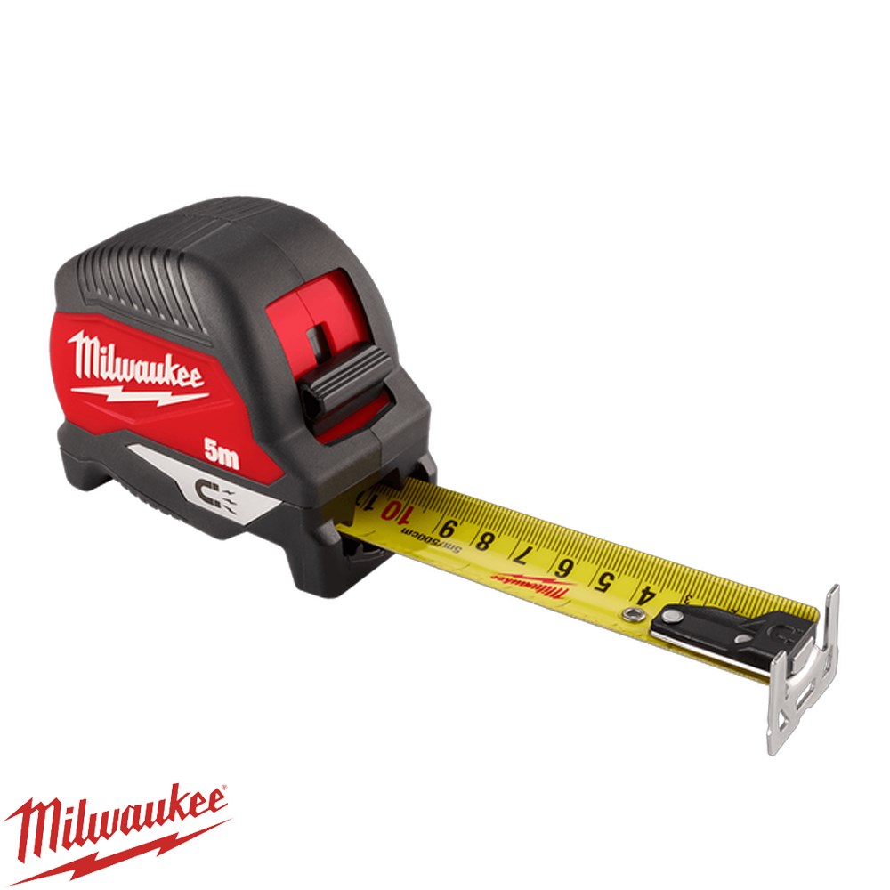 The Milwaukee 5M Compact Magnetic Tape Measure combines portability, durability, and precision for jobsite use. Featuring a magnetic hook for easy attachment to EMT and steel studs, it offers up to 4.5m of standout and smooth, controlled blade retraction. With a reinforced 5-point impact-resistant frame and nylon anti-tear coating on the first 150mm of the blade, it delivers long-lasting performance in tough conditions.
