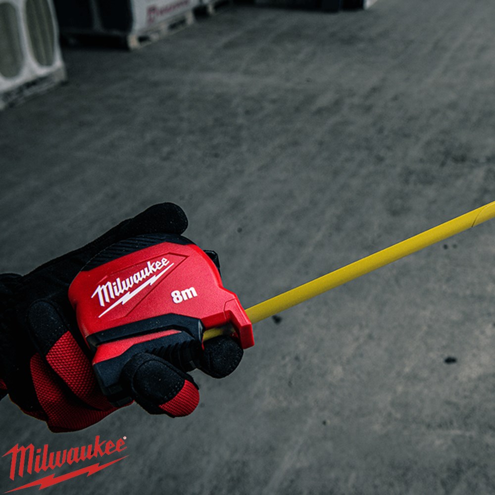 The Milwaukee 8M Compact Tape Measure is built for durability and ease of use on demanding jobsites. Featuring a reinforced 5-point impact-resistant frame, wear-resistant nylon blade protection, and a vibrant blade for visibility, it delivers reliable measurements. With a 3.2m standout and a stamped steel belt clip, it provides extended reach and convenient portability for all-day use.