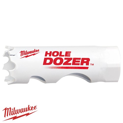 Milwaukee® HOLE DOZER™ Bi-Metal hole saw's new 3.5 TPI tooth offers the longest life in metal applications. Featuring RIP GUARD™, a tooth design built with more steel behind the cutting edge for maximum durability. RIP GUARD™ supports the Limited Lifetime Tooth Break Warranty applied to all Milwaukee® HOLE DOZER™ Bi-Metal hole saws. The All-Access slots feature solves the frustration of plug removal for less downtime and more productivity between holes. The latest slot design gives increased pilot visibility for accurate placement and faster chip ejection keeping cuts cool. The HOLE DOZER™ Thermoset anti-friction coating allows for cooler and faster cutting. Optimised for cordless tools, the HOLE DOZER™ hole saw deliver 25% more holes per charge and can take on all general-purpose applications. Milwaukee® proudly makes HOLE DOZER™ hole saws in the USA.