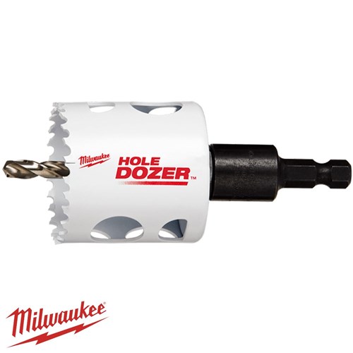 Milwaukee® HOLE DOZER™ Bi-Metal hole saw's new 3.5 TPI tooth offers the longest life in metal applications. Featuring RIP GUARD™, a tooth design built with more steel behind the cutting edge for maximum durability. RIP GUARD™ supports the Limited Lifetime Tooth Break Warranty applied to all Milwaukee® HOLE DOZER™ Bi-Metal hole saws. The All-Access slots feature solves the frustration of plug removal for less downtime and more productivity between holes. The latest slot design gives increased pilot visibility for accurate placement and faster chip ejection keeping cuts cool. The HOLE DOZER™ Thermoset anti-friction coating allows for cooler and faster cutting. Optimised for cordless tools, the HOLE DOZER™ hole saw deliver 25% more holes per charge and can take on all general-purpose applications. Milwaukee® proudly makes HOLE DOZER™ hole saws in the USA.