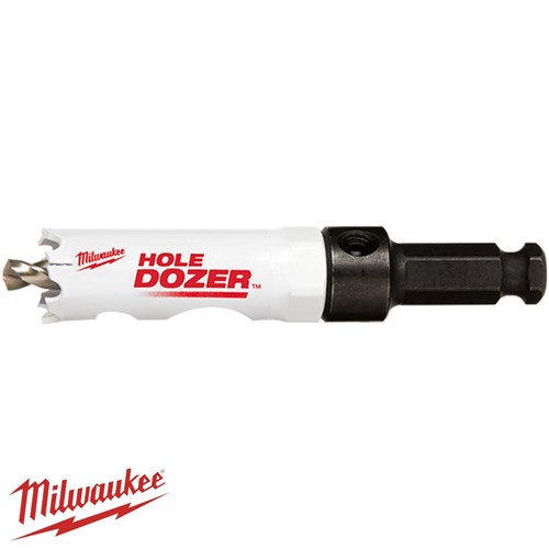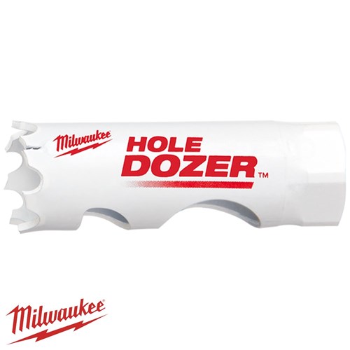 Milwaukee® HOLE DOZER™ Bi-Metal hole saw's new 3.5 TPI tooth offers the longest life in metal applications. Featuring RIP GUARD™, a tooth design built with more steel behind the cutting edge for maximum durability. RIP GUARD™ supports the Limited Lifetime Tooth Break Warranty applied to all Milwaukee® HOLE DOZER™ Bi-Metal hole saws. The All-Access slots feature solves the frustration of plug removal for less downtime and more productivity between holes. The latest slot design gives increased pilot visibility for accurate placement and faster chip ejection keeping cuts cool. The HOLE DOZER™ Thermoset anti-friction coating allows for cooler and faster cutting. Optimised for cordless tools, the HOLE DOZER™ hole saw deliver 25% more holes per charge and can take on all general-purpose applications. Milwaukee® proudly makes HOLE DOZER™ hole saws in the USA.