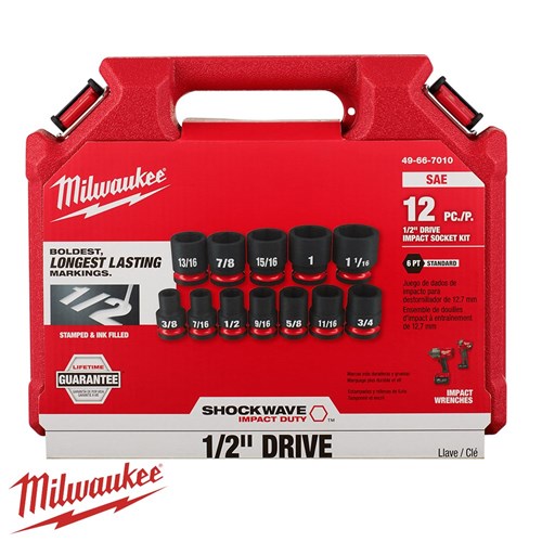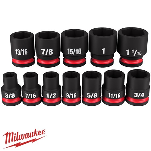 Milwaukee Shockwave™ 1/2" Drive 12pc SAE Standard 6 Point Impact Socket Set