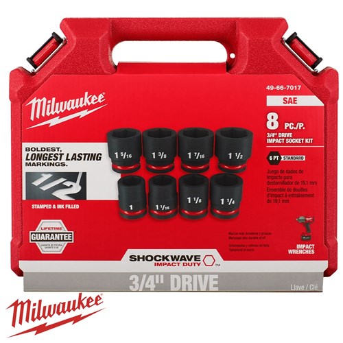 Milwaukee Shockwave™ 3/4" Drive 8pc SAE Standard 6 Point Impact Socket Set