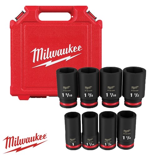Milwaukee Shockwave™ 3/4" Drive 8pc SAE Deep 6 Point Impact Socket Set