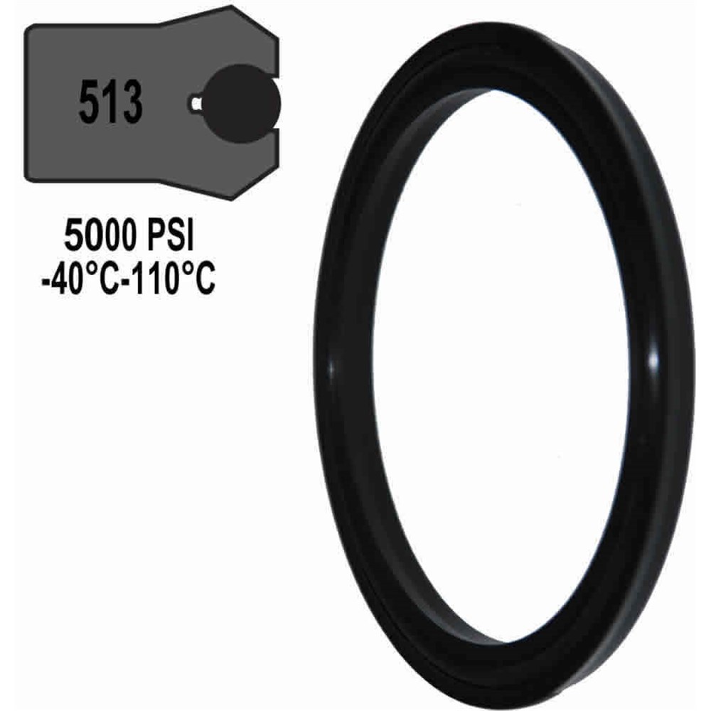 The Hallite 513 is a standard profile loaded U cup utilising a polyurethane or polyester shell energised by a high specification resilient O ring. At zero or low pressure the O ring helps to increase the sealing force preventing any bypass. As pressure rises the sealing force increases and the O ring provides complete lip actuation under most conditions. Maximum pressure of 5000 psi operating temperature range -30 Degree C to +120 Degree C.