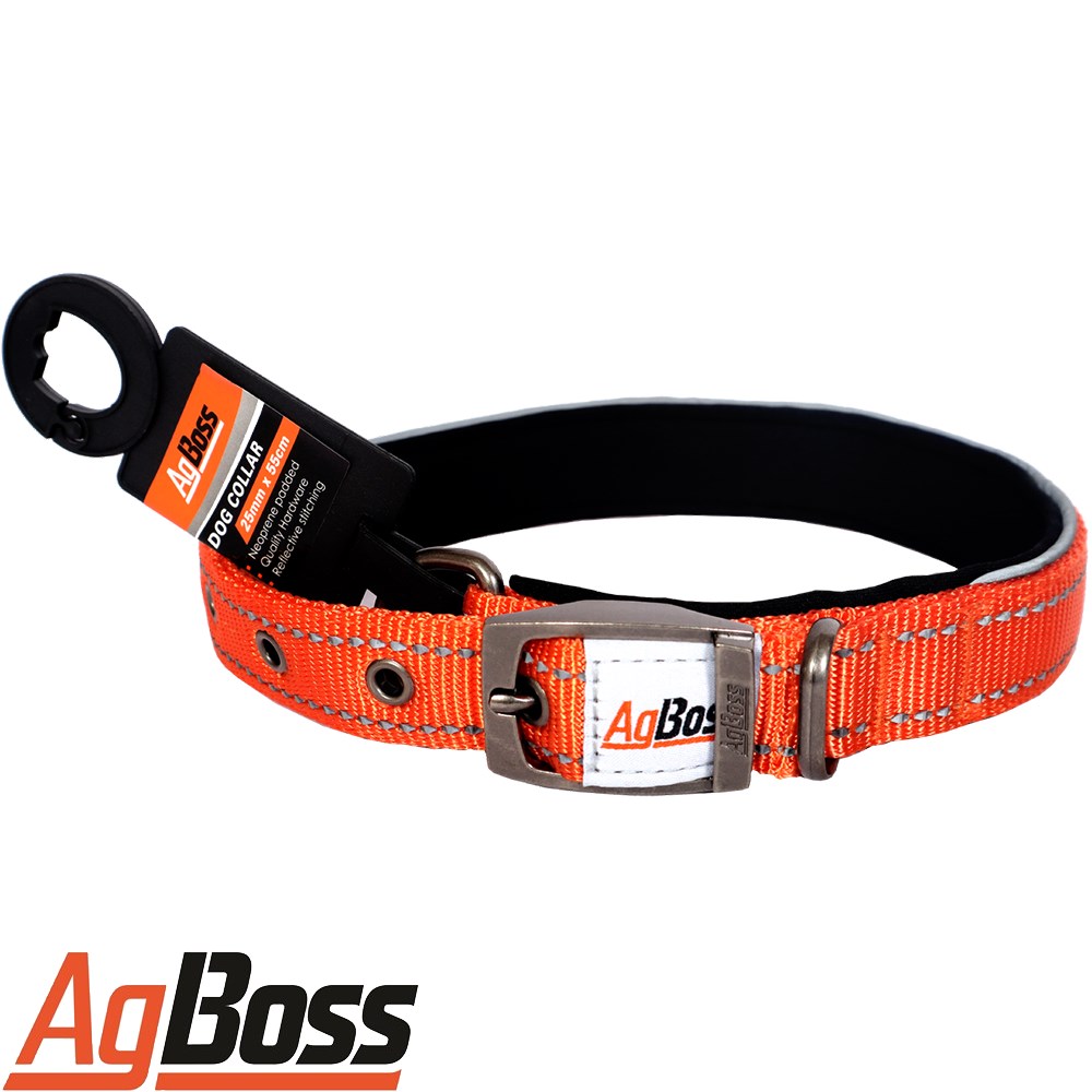 Introducing the AgBoss Reflective Neoprene Dog Collar – a dependable and durable accessory crafted to ensure the safety and comfort of your four-legged companion during walks or outdoor excursions. Constructed with premium materials, this collar is engineered to endure daily wear and tear, making it an ideal choice for energetic dogs.