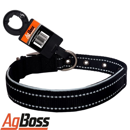Introducing the AgBoss Reflective Neoprene Dog Collar – a dependable and durable accessory crafted to ensure the safety and comfort of your four-legged companion during walks or outdoor excursions. Constructed with premium materials, this collar is engineered to endure daily wear and tear, making it an ideal choice for energetic dogs.