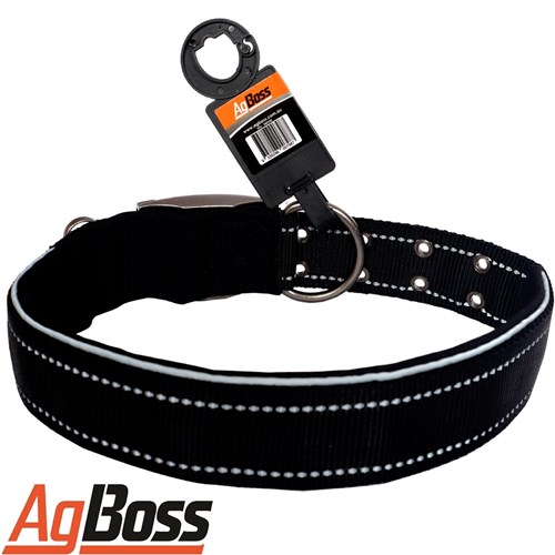 Introducing the AgBoss Reflective Neoprene Dog Collar – a dependable and durable accessory crafted to ensure the safety and comfort of your four-legged companion during walks or outdoor excursions. Constructed with premium materials, this collar is engineered to endure daily wear and tear, making it an ideal choice for energetic dogs.
