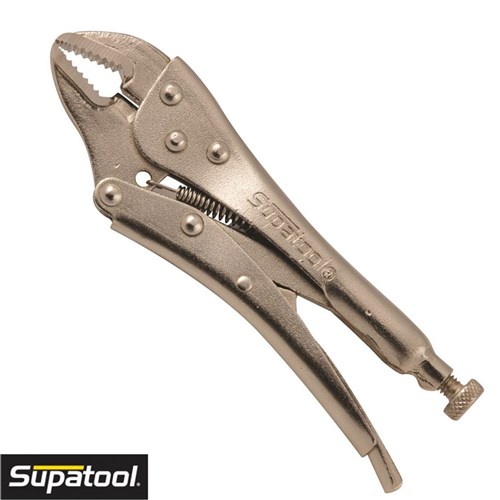The Supatool Locking Pliers 125mm (5") are built to deliver exceptional strength and precision. Featuring a straight jaw design and serrated jaws, these pliers provide a secure grip on a wide range of surfaces, ensuring reliable performance with every use. Fully hardened, tempered, and chrome-plated for durability, they are designed to withstand tough tasks. The adjustable jaw opening and quick-release lever make adjustments fast and easy, while the high-quality pressed steel handles with hardened rivets ensure strength and longevity. Perfect for gripping, clamping, and holding, these locking pliers are an essential tool for any toolkit.