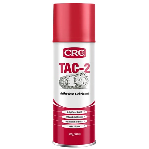 CRC TAC2 is a robust adhesive lubricant that minimizes friction and wear on chain and wear surfaces, enhancing operational longevity by preventing metal fatigue. It offers excellent resistance to cold, hot, and saltwater wash-off, as well as high-temperature sling-off. Ideal for chain drives, open gears, pulleys, wire ropes, and conveyors, this adhesive lubricant penetrates vital areas like chain pins and wire rope strands, ensuring effective and lasting lubrication for reliable equipment performance.