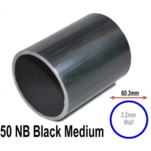 Medium Wall Steel Pipe.Manufactured to AS/NZS 1163-2009. Supplied in black finish. Can be purchased by the metre. Standard Length = 6.5 Metres.