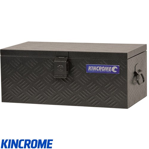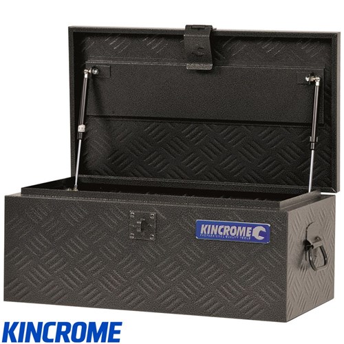 The Kincrome Tradesman Truck Box features a butt hinged lid with internal reinforcing for added strength, dual lid gas struts, side carry handles, bolt cutter resistant security latches and pre drilled base mounting holes with optional rubber feet. The Tradesman Truck Box is made from strong welded chequer plate steel and has been finished in UV stabilised Hammertone powder coat for rust and scratch resistance.