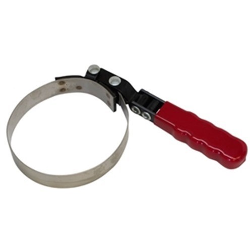 Handle Swivels to Clear Obstructions.Features the swivel handle, gripper "teeth" and 1" wide stainless steel band. The swivel handle makes it easy to turn filters in hard to reach locations. Vinyl covered handle. Range 4 1/8" to 4 1/2" (104.7 - 112.7mm)