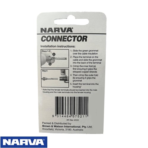 Narva Super Seal Amp Connectors 1 Way 14 Amp Rating 2-4mm2 Cable Range