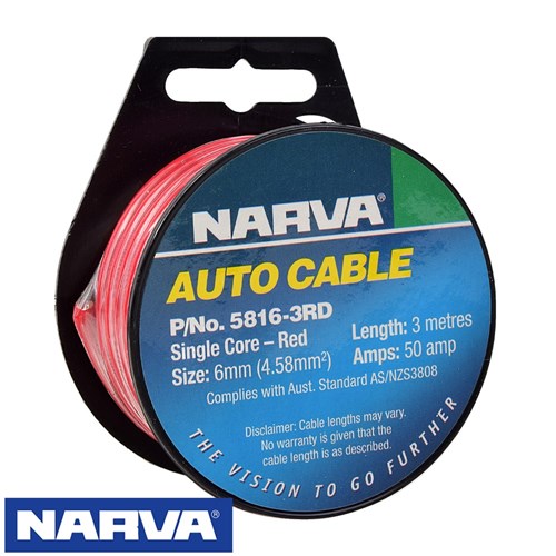 All Narva cables are manufactured with oxygen free copper and RoHs compliant poly-vinyl chloride (P90 PVC) insulation in accordance with Australian & NZ Standards AS/NZS 3808.