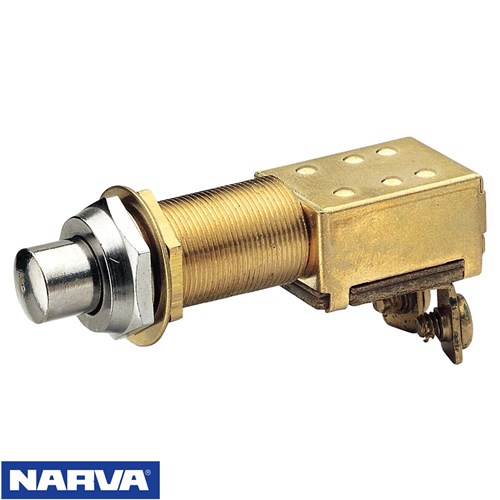 SPST, brass construction, chrome knob Screw terminals Amperage rating 15A at 12V, 7.5A at 24V Mounting opening 16mm dia.