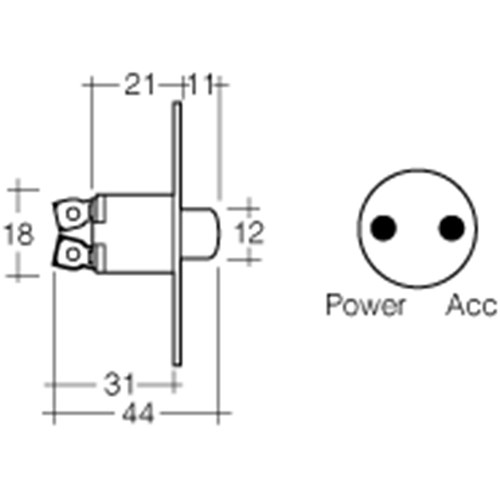 SPST, heavy-duty construction, dual mounting holes Screw terminals Mounting opening 18mm dia. Amperage rating 5A at 12V, 2.5A at 24V Switch contacts normally closed