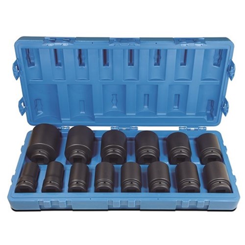 - 14 deep sockets ranging from 1-1/4" to 2-1/2"