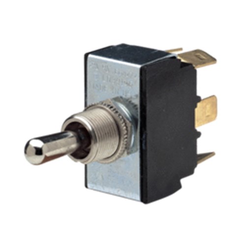 Heavy duty metal toggle switch with changeover function. On/on.