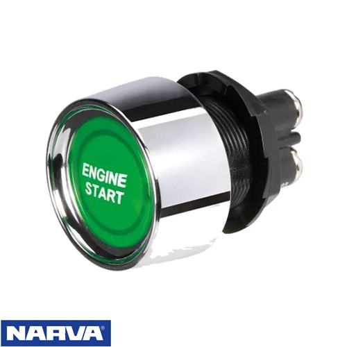12 Volt Starter Switch with L.E.D. Screw terminals. Amperage rating 50A at 12V. Mounting opening 22mm dia.