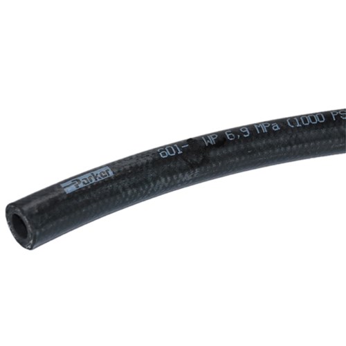 Parker 601 hydraulic hose Specifications: SAE 100R3Application: Petroleum base hydraulic fluids and lubricating oils. Reinforcement: Two fibre braids wire. Cover: Synthetic rubber, MSHA accepted. Temperature Range: -40 DegreeF to +257 DegreeF (-40 DegreeC to +125 DegreeC). Fittings: 43 series