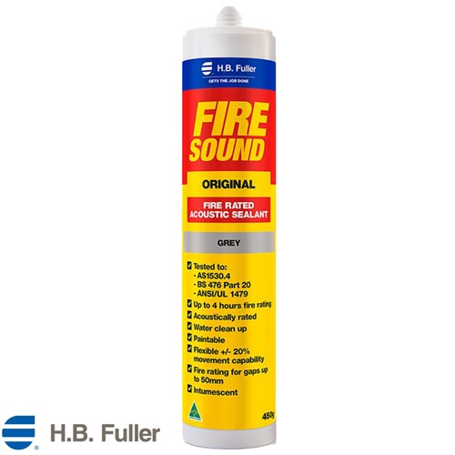 H.B. Fuller Firesound Original is a high-performance fire-rated acoustic sealant designed for joints and penetrations, providing up to 4 hours of fire resistance for gaps up to 50mm. It expands when exposed to fire, preventing the spread of flames through expansion joints while maintaining flexibility to accommodate movement. Doubling as an acoustic sealant, it effectively reduces noise transmission, making it ideal for both fire protection and soundproofing. Available in convenient 450g cartridges, Firesound Original is the perfect solution for enhancing safety and acoustic performance in construction and renovation projects.