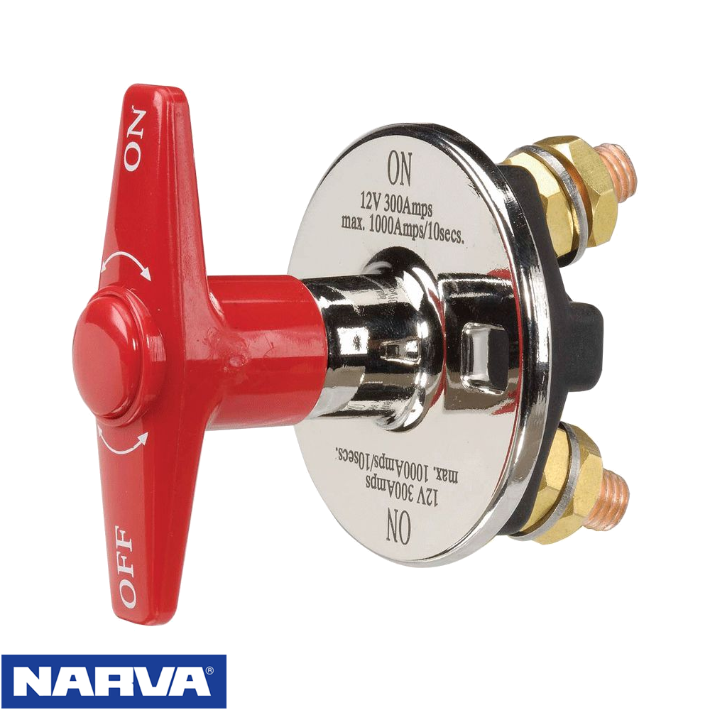 Automotive/Marine Battery Master Switch. Nickel plated with solid copper terminals for superior corrosion resistance. Ideal for automotive and marine applications exposed to salt water and other harsh environmental conditions (IP67). Capacity, 1000A at 12V for 5 seconds, 500A at 24V for 5 seconds, 300A at 12V continuous load maximum, 150A at 24V continuous load maximum.