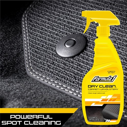 Formula 1 Dry Clean™ Carpet & Upholstery Cleaner: Your solution for tackling the toughest stains and soil with ease. Developed in professional detail shops, this deep cleaning foam spray penetrates deep to remove stubborn soil and stains from carpets and upholstery. Harnessing the power of a natural citrus solvent, it effectively eliminates the toughest grime, leaving surfaces clean and refreshed. Simple to use — just spray on, let the foam penetrate, and wipe off. With fast drying action, it leaves carpets and fabrics smelling fresh in no time. Versatile for household use, it's perfect for addressing pet stains, wine spills, and other common mishaps. Trust Dry Clean™ to restore freshness and cleanliness to your interiors effortlessly.