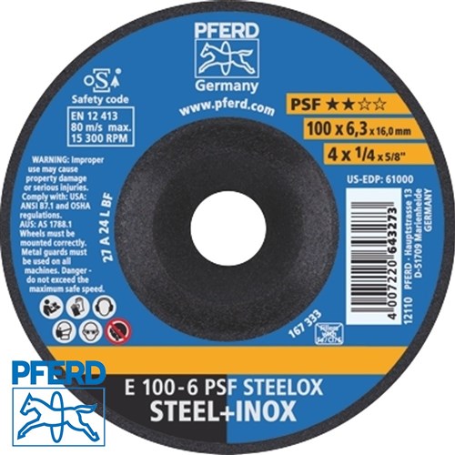 This grinding disc can be used on stainless steel as it is free from fillers such as sulphur, iron and chlorine. Ideal for edge and weld grinding. Will suit 100mm (4") angle grinders.