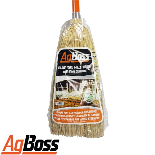 AgBoss 8 Tie Millet Broom with Cane Inserts