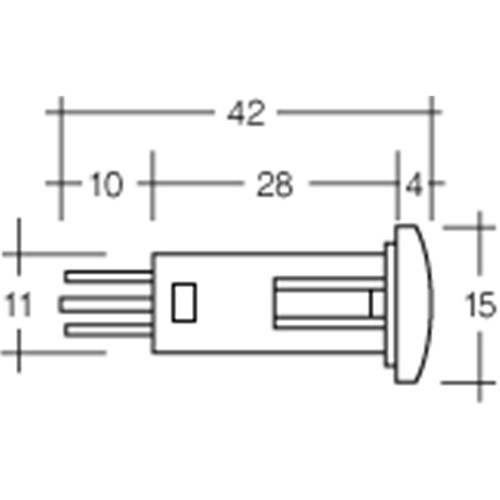 12 Volt Pilot Lamp with Amber L.E.D. Push-fit design with push on terminals. Amperage rating 0.02A at 12V. Mounting opening 12.5mm dia.