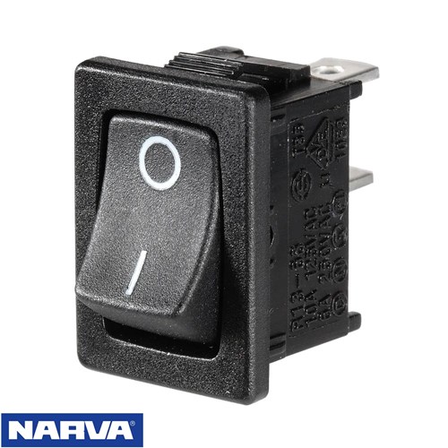 SPST, push-fit design with push on terminals Amperage rating 20A at 12V, 10A at 24V Mounting opening 18.5 x 12mm