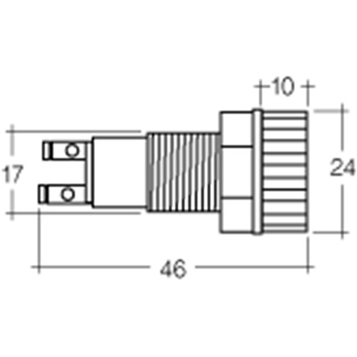 12 Volt Pilot Lamp with Red L.E.D. Push-fit design with push on terminals. Amperage rating 0.02A at 12V. Mounting opening 12.5mm dia.
