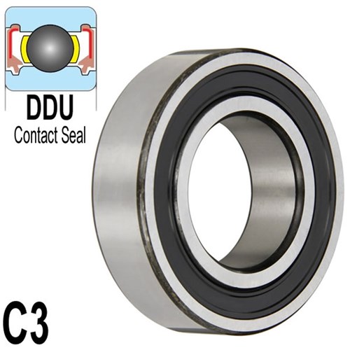 Single Row Deep Groove Radial Ball Bearing. One of the most common bearing types designed to accommodate radial loads. 2 x DDU Style contact seals provides good resistance to contamination. Bearing is pre-lubricated with high temperature grease.
