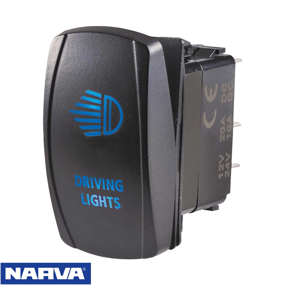 Narva 12/24V Off/On LED Illuminated Sealed Rocker Switch with "Driving Lights" Symbol (Blue)
