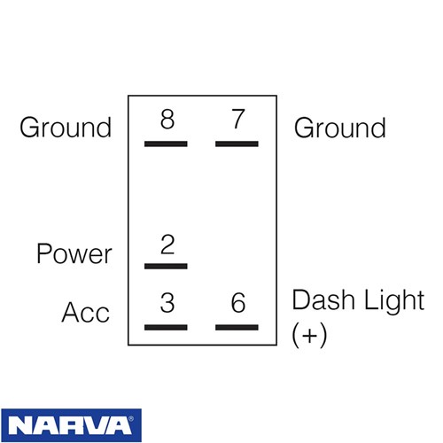 SPDT, push-fit design with push on terminals, ‘Dash Light’ & ‘On’ illumination Amperage rating 20A at 12V, 10A at 24V Mounting opening: 37.5 x 21mm