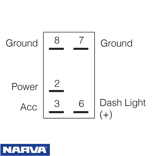 SPDT, push-fit design with push on terminals, ‘Dash Light’ & ‘On’ illumination Amperage rating 20A at 12V, 10A at 24V Mounting opening: 37.5 x 21mm