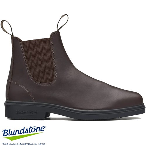 The Blundstone 659 Work Boot combines sophistication with comfort, making it an ideal choice for those seeking style without sacrificing functionality.With its sleek square toe and herringbone elastic, this boot exudes elegance and refinement. Crafted from brown Thoroughbred full-grain leather, it offers a luxurious aesthetic that effortlessly elevates any ensemble.