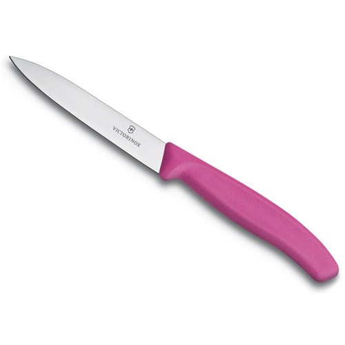 This pink handled paring knife set, is perfectly sized at 10cm. It's pointed tipped non-serrated blade makes for ease of use and it's dishwasher proof handle makes them easy clean as well