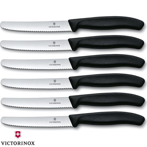 10CM ROUND SERRATED BLADE BLACK HANDLE 6 PIECE