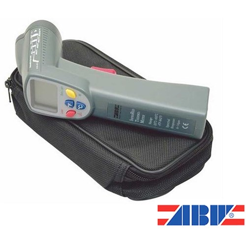 ABW Infrared thermometer with vinyl case. This thermometer quickly and easily obtains thesurface temperatures of any object and has hundreds of uses in many industries including, Automotive, Industrial and Electrical. Features a convenient degree Celsius or Fahrenheit scale switch function, back-lit LCD display, automatic Data Hold &Auto Power Off and is very simple and safe to use. Temperature Range is minus 50 degree Celsius to 500 degree Celsius. Battery sold separately.