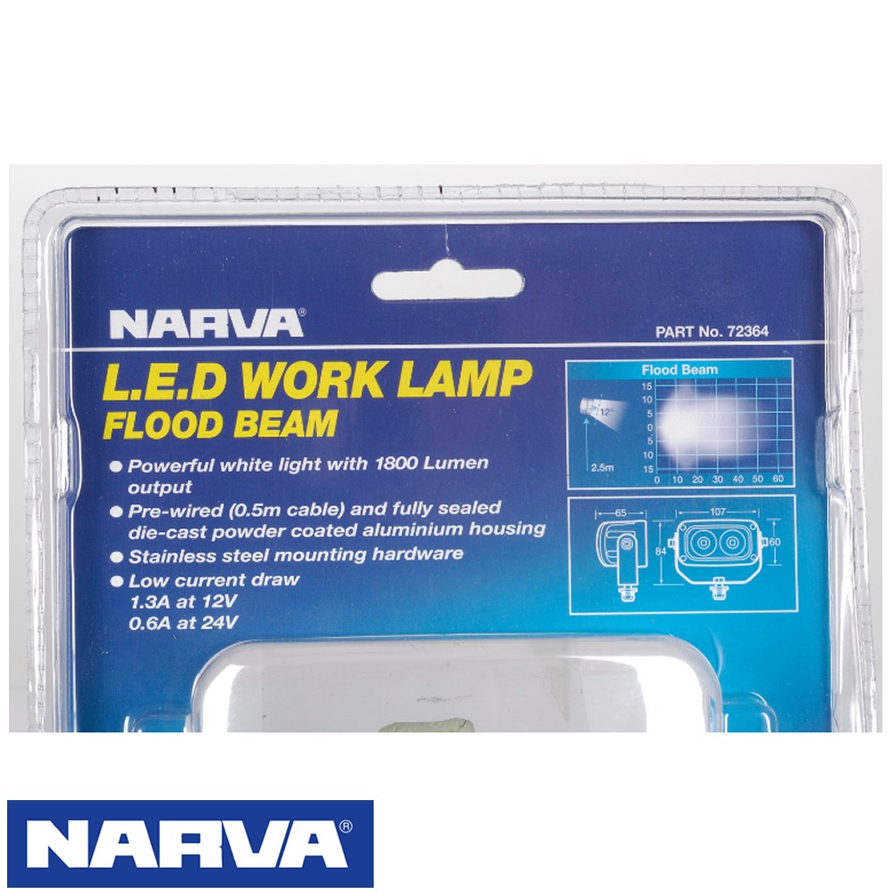 L.E.D Work Lamp Flood Beam - 900 LumensFeatures: Economical and reliable L.E.D lamp delivers a smooth and even spread of bright white light. Ideal for recreational and utility applications. Fully sealed (IP66) with a pre-wired, slim bodied die-cast aluminium housing. 10-33v