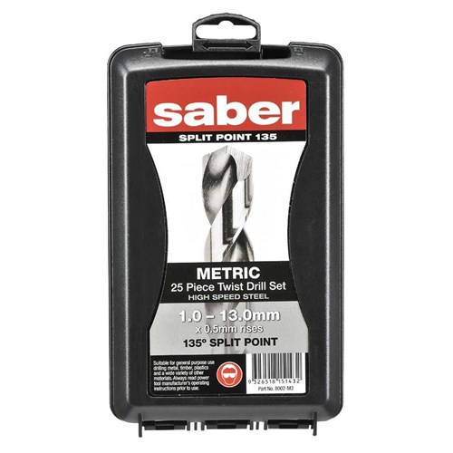 • Saber 25 Piece Bright HSS Twist Drill Set 1.0-13.0mm x 0.5mm rises