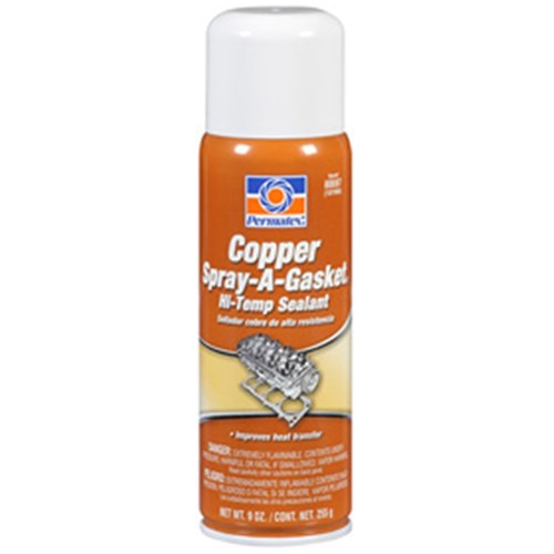 Permatex Copper Spray Gasket Aerosol 255gm. Fast-drying, metallic copper sealant helps dissipate heat, prevents gasket burnout and improves heat transfer.