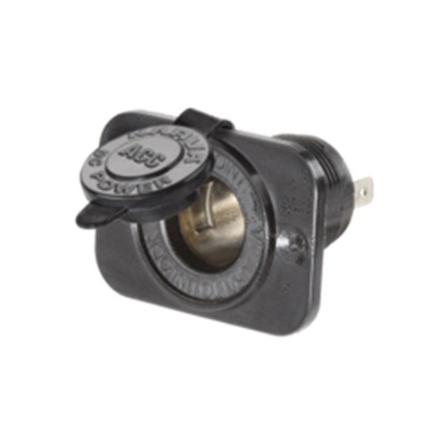 Features dustproof cover and heavy-duty construction. The fitting mechanism allows installation into interior or exterior panels including steel and aluminium. Can be installed with or without the mounting panel. Amperage rating 20A at 12V, 10A at 24V. Mounting opening 29mm dia.