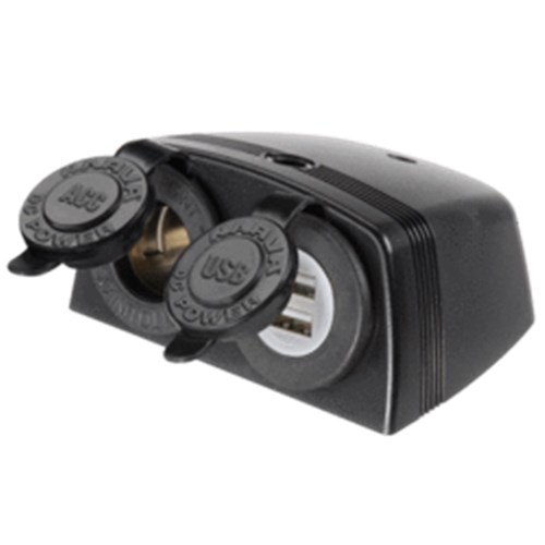 Features dustproof covers and stylish surface mount plastic housing. Moulded housing allows fitment to interior or exterior panels for easy installation. Amperage rating: Accessory Socket 20A at 12V, 10A at 24V.