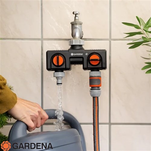The Gardena Twin Tap Connector is designed for simultaneously connecting two accessories to one tap. The outlets are fully adjustable and can be converted to the Gardena Maxi-Flo System with the Maxi-Flo Tap Nut. Suitable for taps with 26.5mm (3/4") and 33.3 mm (1") thread and 13mm (1/2") hose connector.