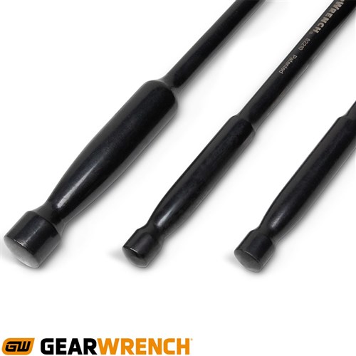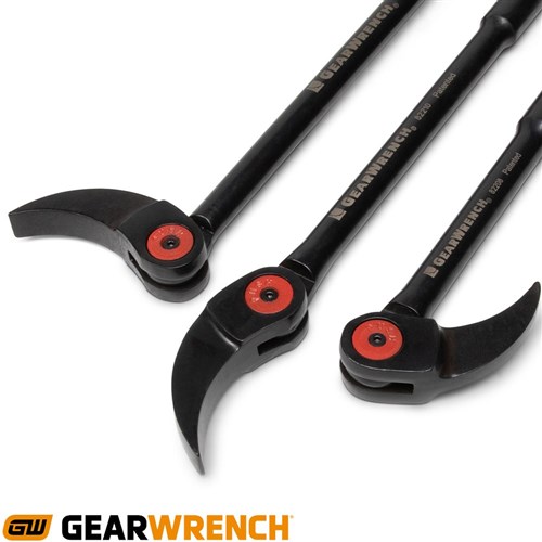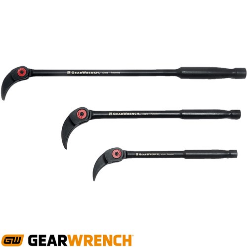 The Gearwrench 3 Piece Pry Bar Set is constructed from heavy duty Alloy Steel with a Black Phosphate finish to esnure the utmost durability for long lasting life.