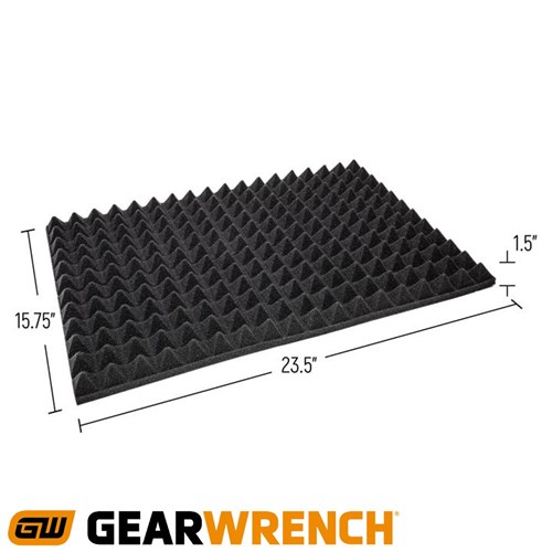 The Trap Mat Universal Tool Storage System from GEARWRENCH is customizable and will fit any 2" deep or deeper drawer. The universal cone design fits almost any shape of tool and the foam is strong and durable to hold your tools in place during transport. The 83370 comes with four 16" x 22" panels that can be easily segmented to fit smaller drawers.