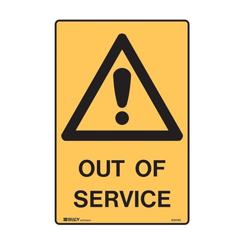 Brady Warning Sign - Out Of Service (Self Adhesive Vinyl) H250mm x W180mm